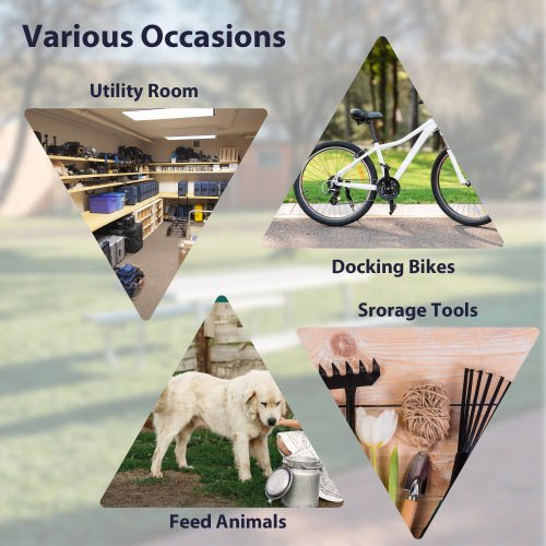 - 【Usage Scenario】This shed is ideal for backyard and patio outdoor use, perfect for storing garden supplies, lawn equipment and tools. It can also be used to store general items that take up space in your home or garage, providing you with a spacious and organized space.