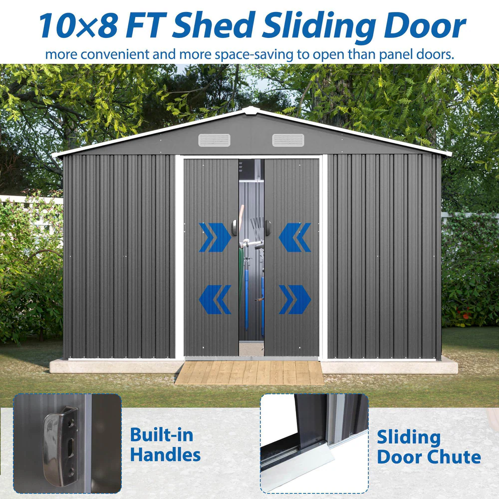 - 【Multi-Purpose Storage Shed】This roomy 10 x 8 shed provides versatile storage, suitable for items like bikes, lawnmowers, ladders, and tools. It can also function as a cozy pet area or a practical garbage enclosure.