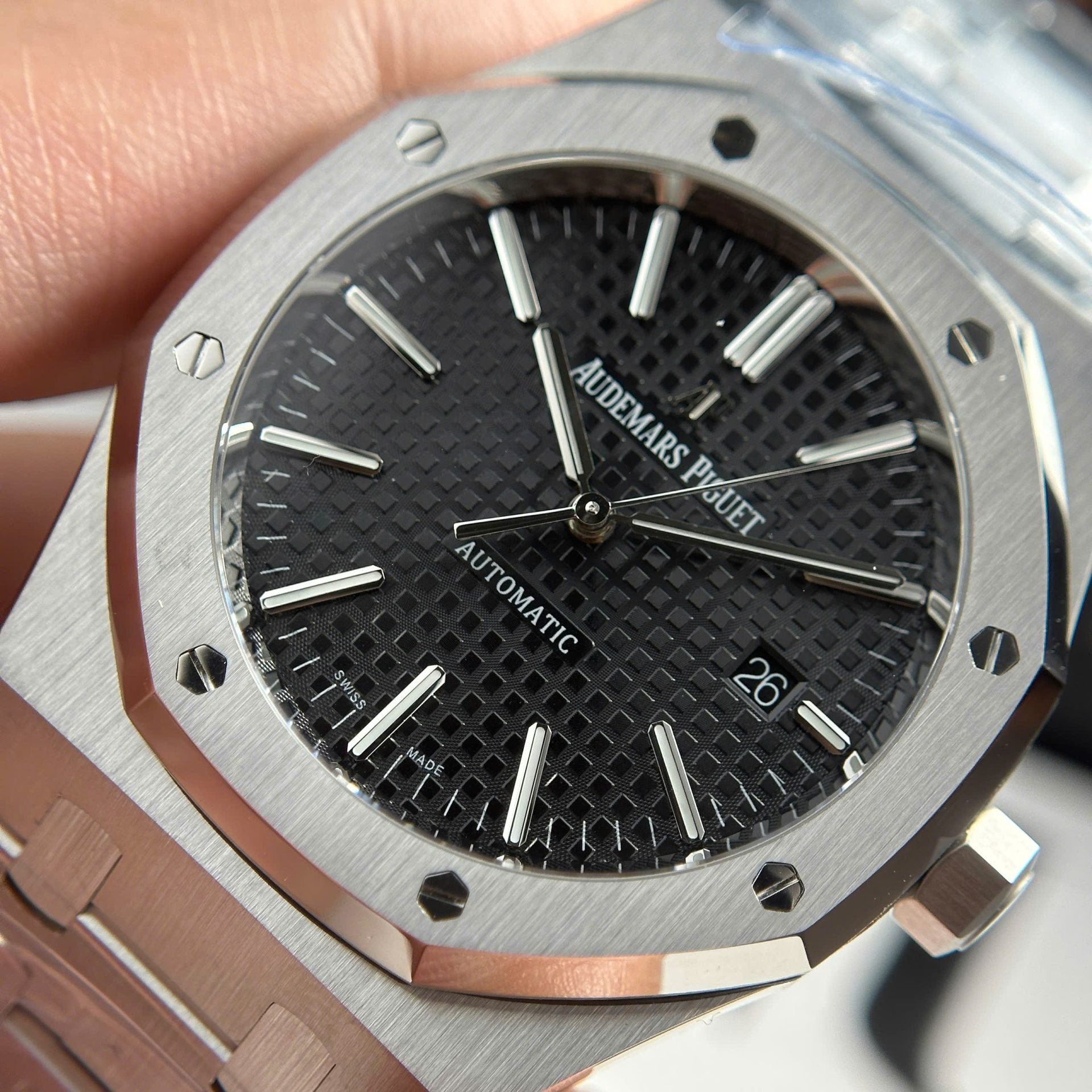 Audemars Piguet Royal Oak 15400ST Watch Black Dial Metal Wire 41mm