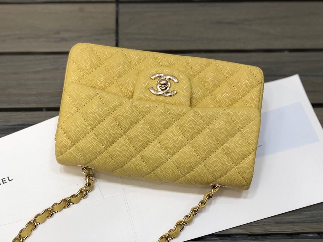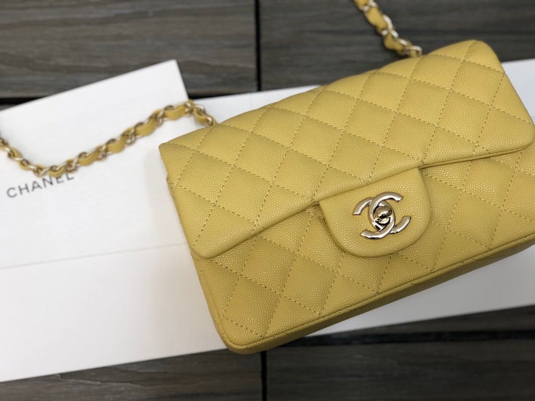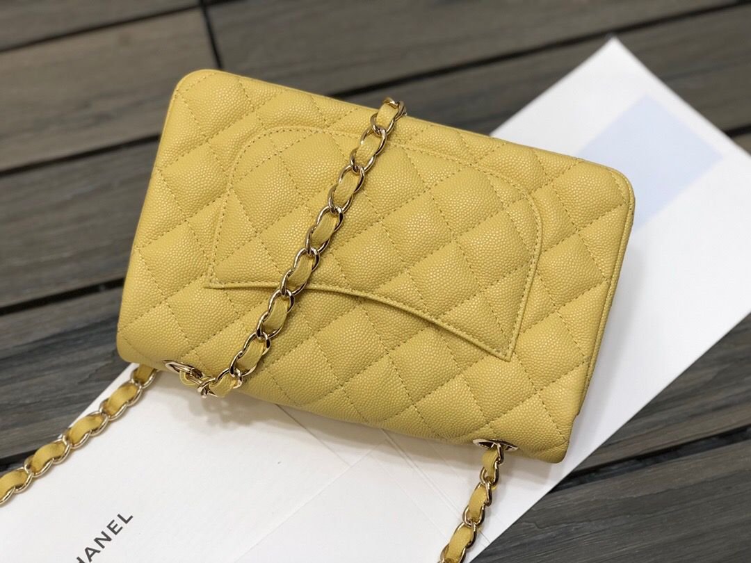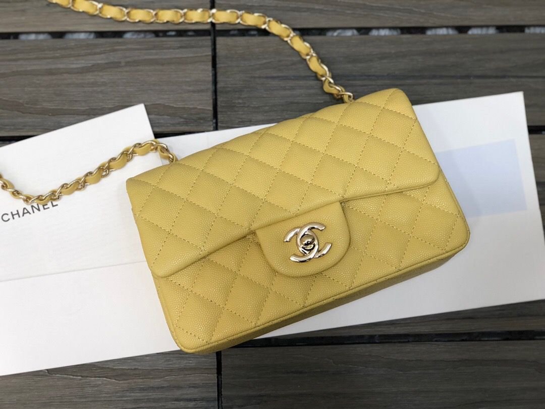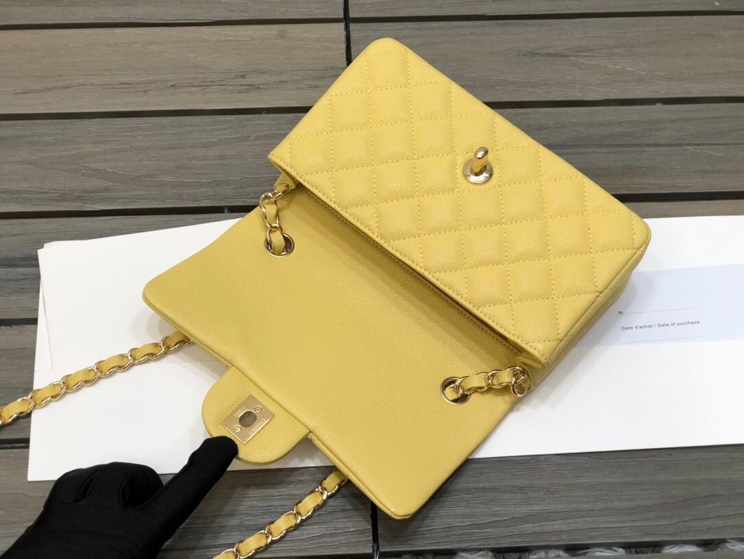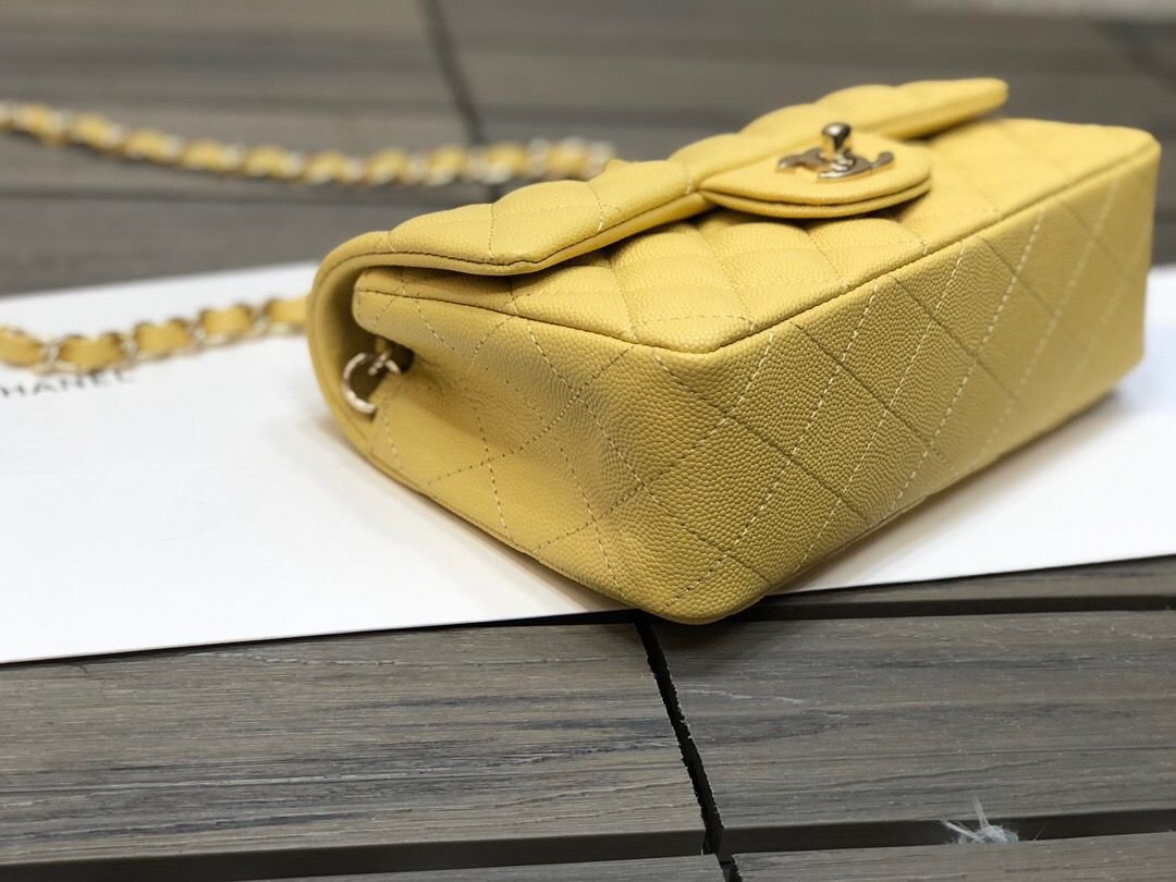 Chanel Classic Flap Bag 20cm Silver Hardware Caviar Leather Spring/Summer Collection Yellow