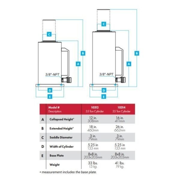 • Base Plate: 8″ x 8″ (203 x 203mm)