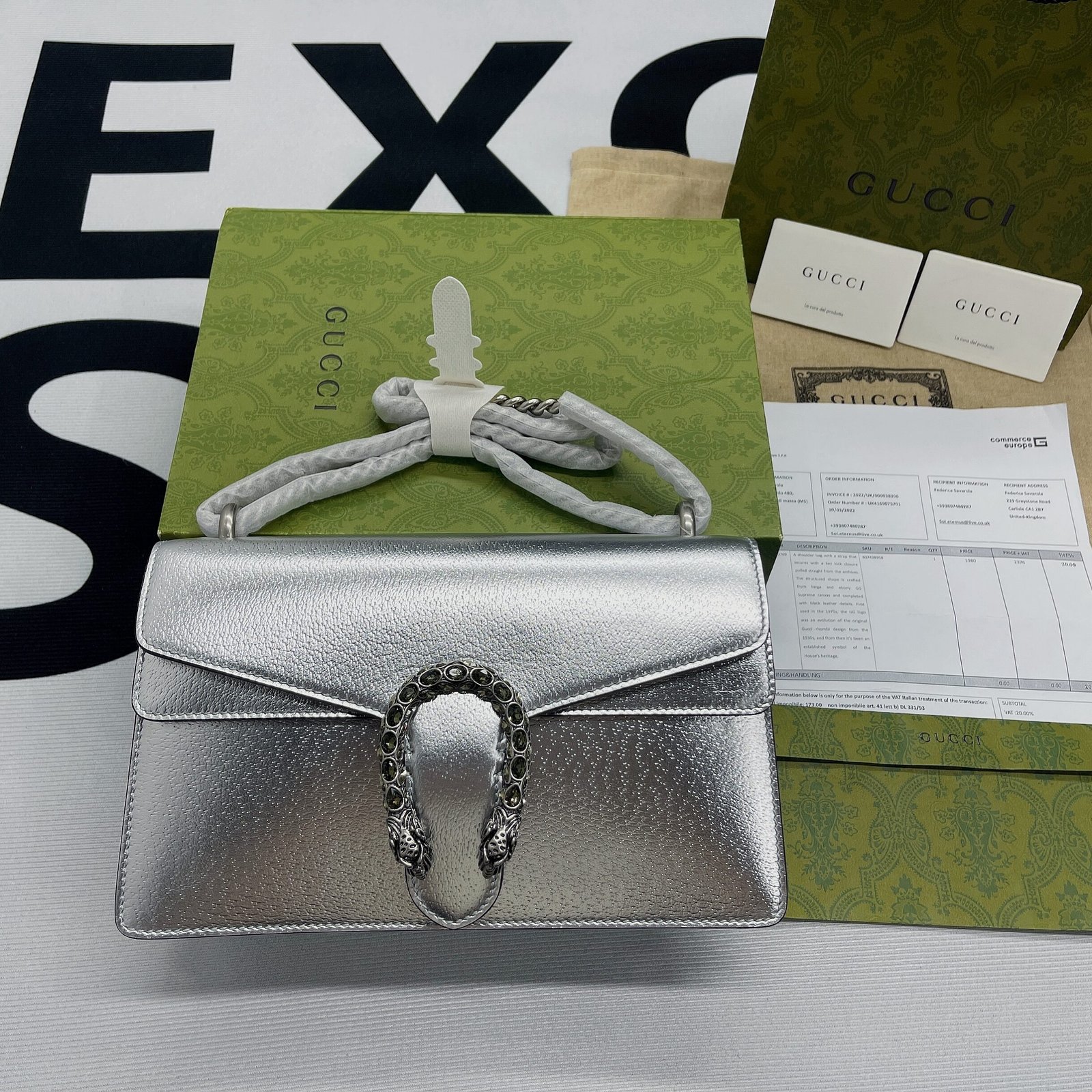 Gucci Dionysus Small Shoulder Bag Silver For Women, Women’s Bags 10in/26cm GG