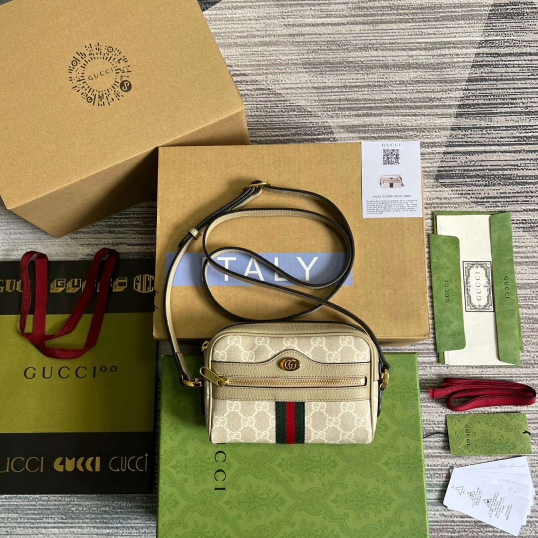 Gucci Ophidia Mini GG Bag Beige And Ebony GG Supreme Canvas, With Beige For Women 7in/17.5cm