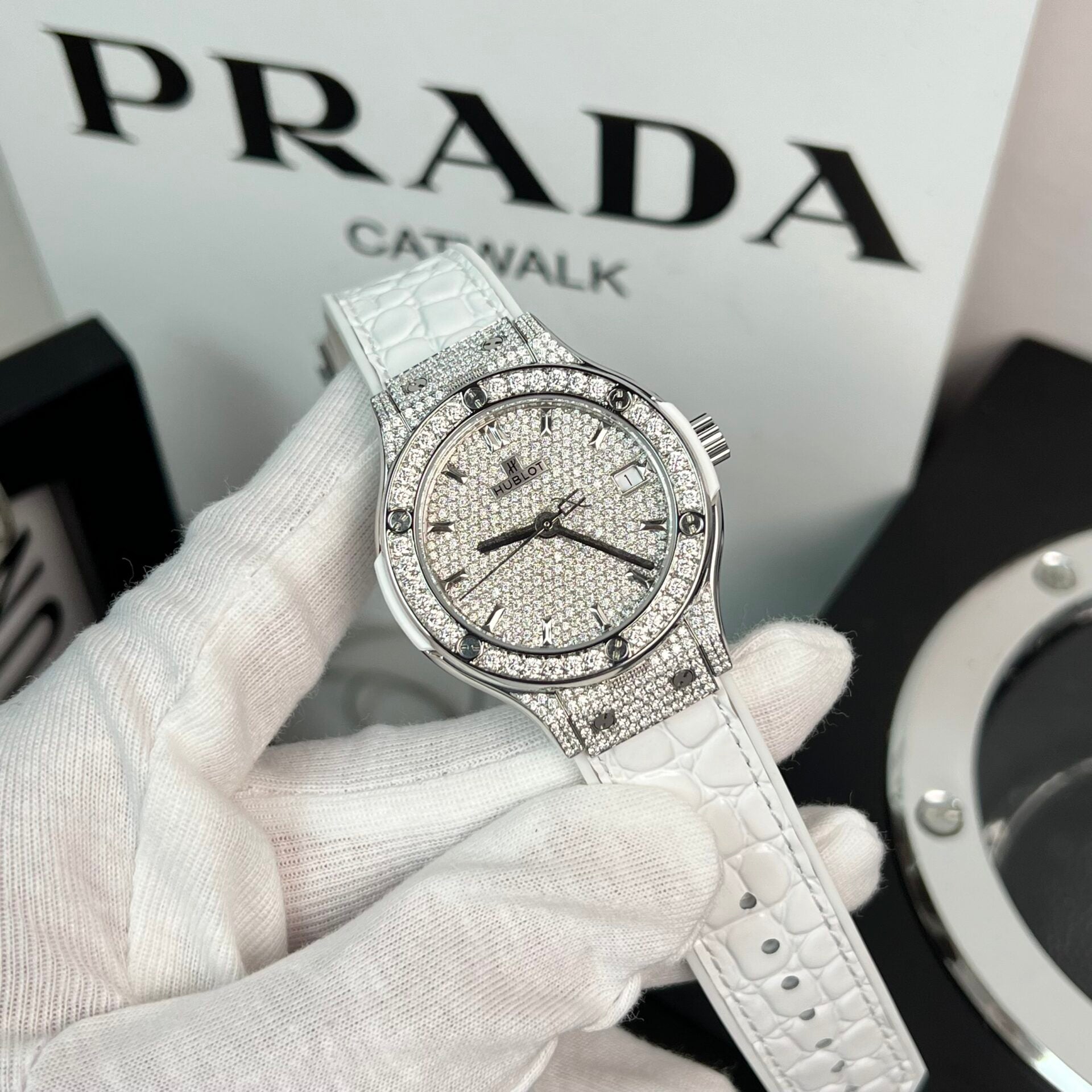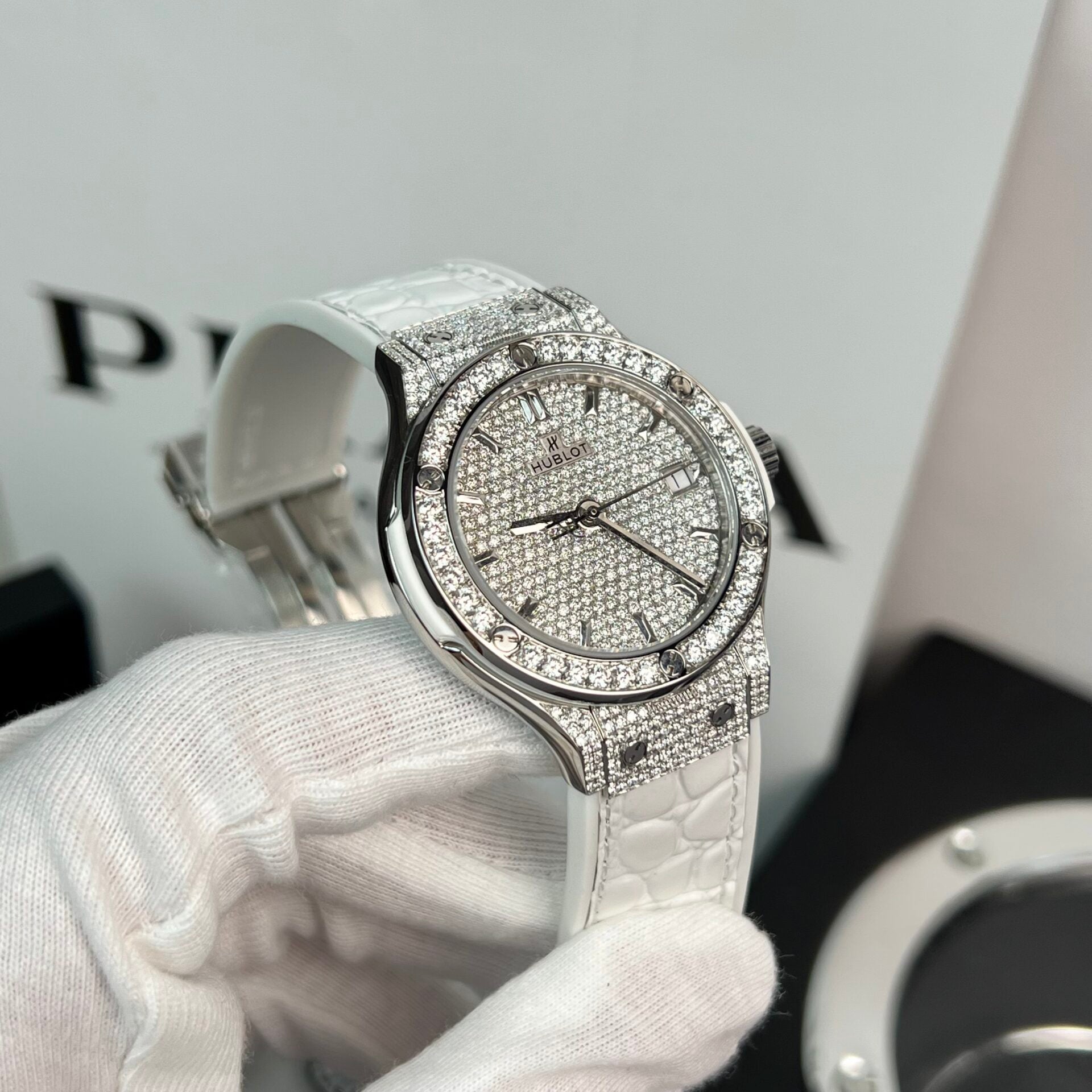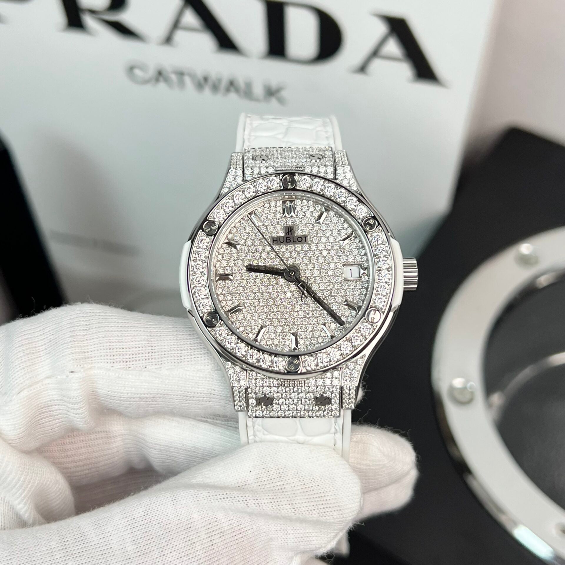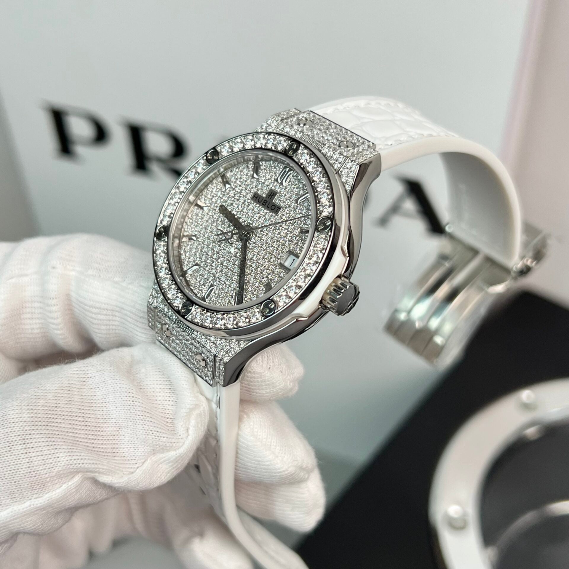 Đồng Hồ Hublot Độ Full Kim Cương Moissanite Màu Trắng HBF 38mm (1)