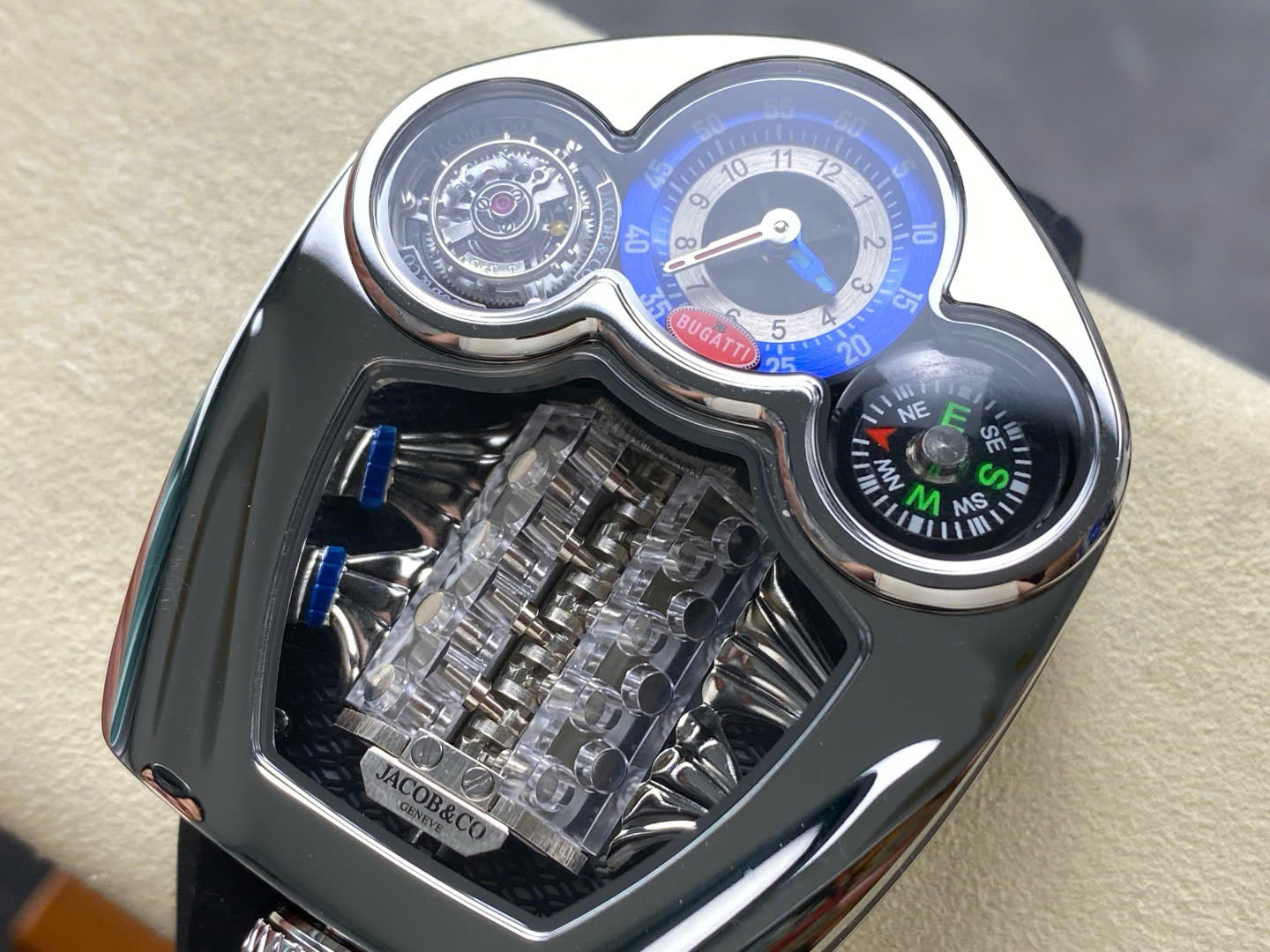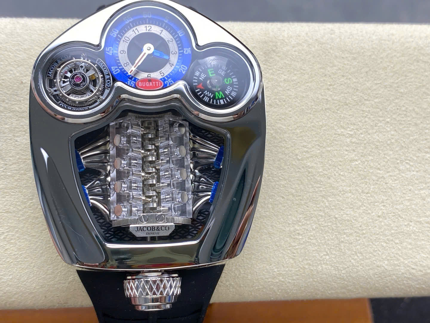Đồng Hồ Jaboc & Co Bugatti Replica Cao Cấp Dây Cao Su Màu Đen 52x48mm