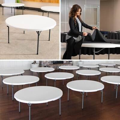 Lifetime (15) 60 in. Round Tables and Cart Combo