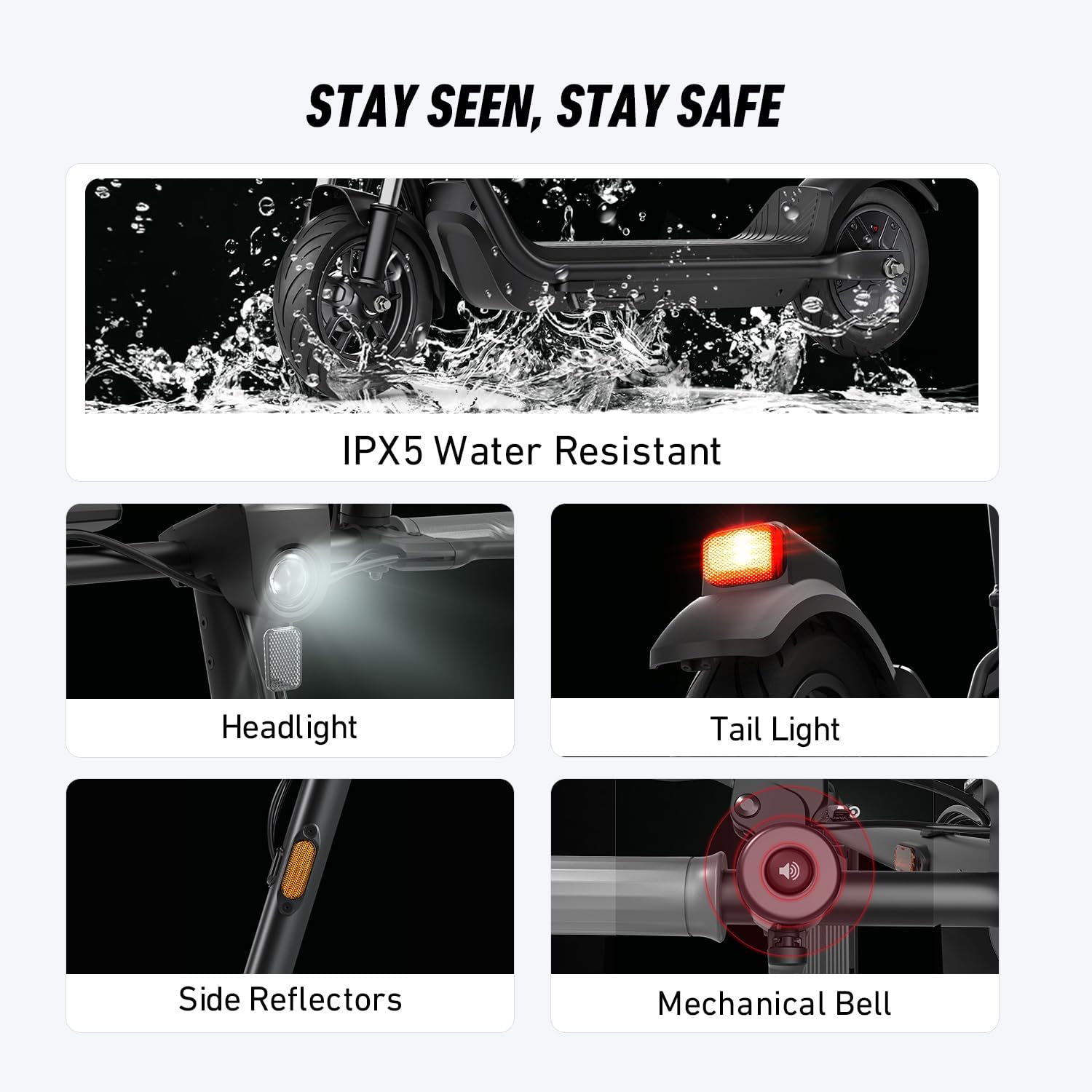 With a maximum range of up to 37.3 miles under optimal conditions, this scooter supports longer commutes and extended rides. Actual range may vary depending on riding style, terrain, weather, and load, ensuring transparent and realistic expectations.