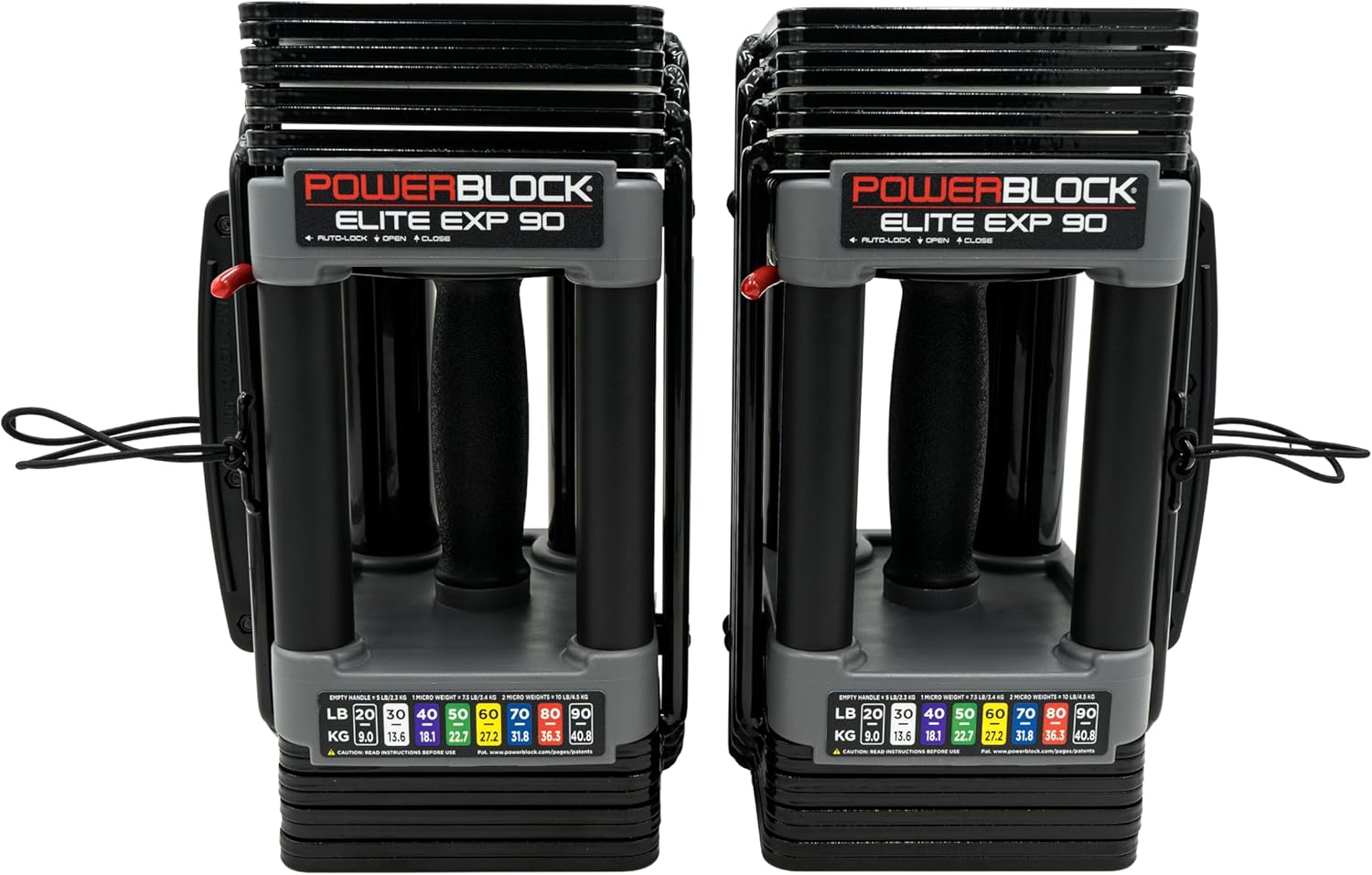 - EXPANDABLE WITH EXPANSION KITS: PowerBlock offers Elite EXP 50 Stage 2 and Stage 3 Expansion Kits to increase the weight to 70 or 90 pounds per hand as your fitness level grows (sold separately). The Elite EXP’s expansions and accessories are not compatible with the Elite USA 90’s expansions and accessories.