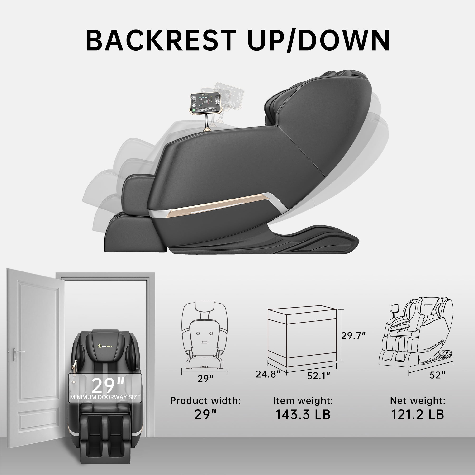 Experience ultimate relaxation with the Real Relax Full Body Zero Gravity Shiatsu Massage Chair. Designed to provide a professional-level massage in the comfort of your home, this recliner combines advanced technology, ergonomic design, and luxurious features to relieve stress, improve circulation, and rejuvenate your body.
