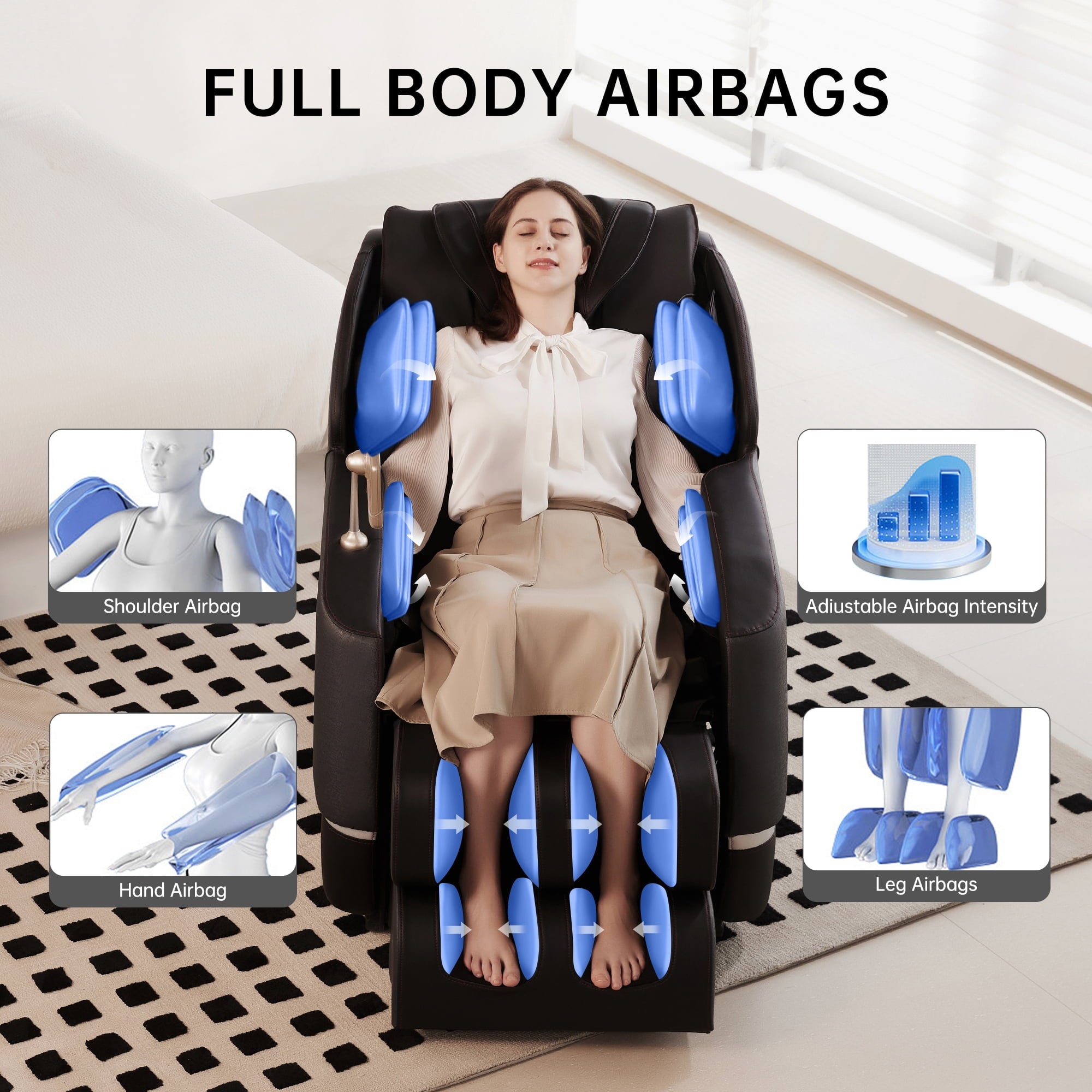 • Easy-to-Use Remote Control: Conveniently select massage modes, intensity, and recline positions.