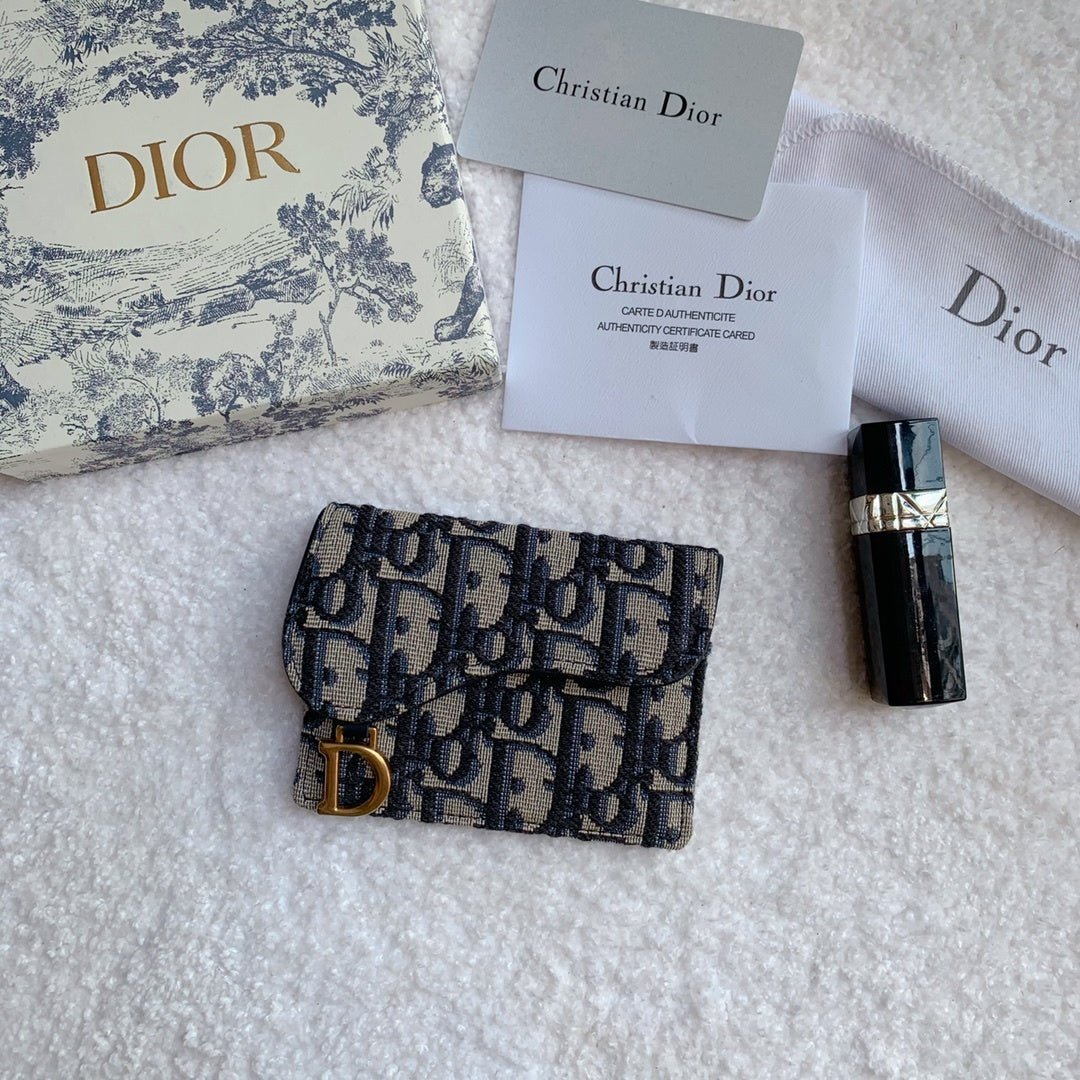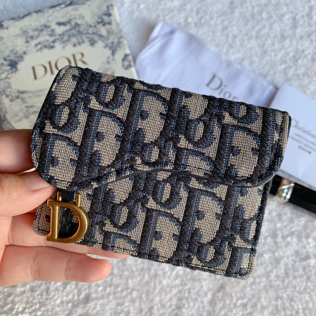 Saddle Lotus Wallet Blue Dior Oblique Jacquard 11cm