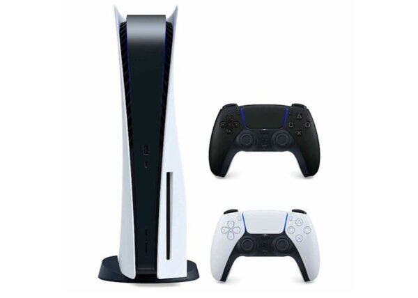 The Sony PlayStation 5 PS5 Disc Console with Extra DualSense Wireless Controller Bundle Midnight Black (3005718 3006392) comes with the new dual-purpose wireless controller. It features 4K graphics and a slim and compact design.The Sony PlayStation 5 PS5 Disc Console with Extra DualSense Wireless Controller Bundle Midnight Black (3005718 3006392) runs at an incredible 12GB/s. It achieves higher levels of memory bandwidth than previous consoles and includes a faster CPU, GPU, DRAM, and SSD storage. Plus, experience an upgraded controller with a touchpad, 6-direction motion sensing, face recognition, and eye-tracking sensors. Other features include a faster Blu-ray Disc drive and VR compatibility.This PlayStation 5 bundle was released in June 2021, and retailed for $849.