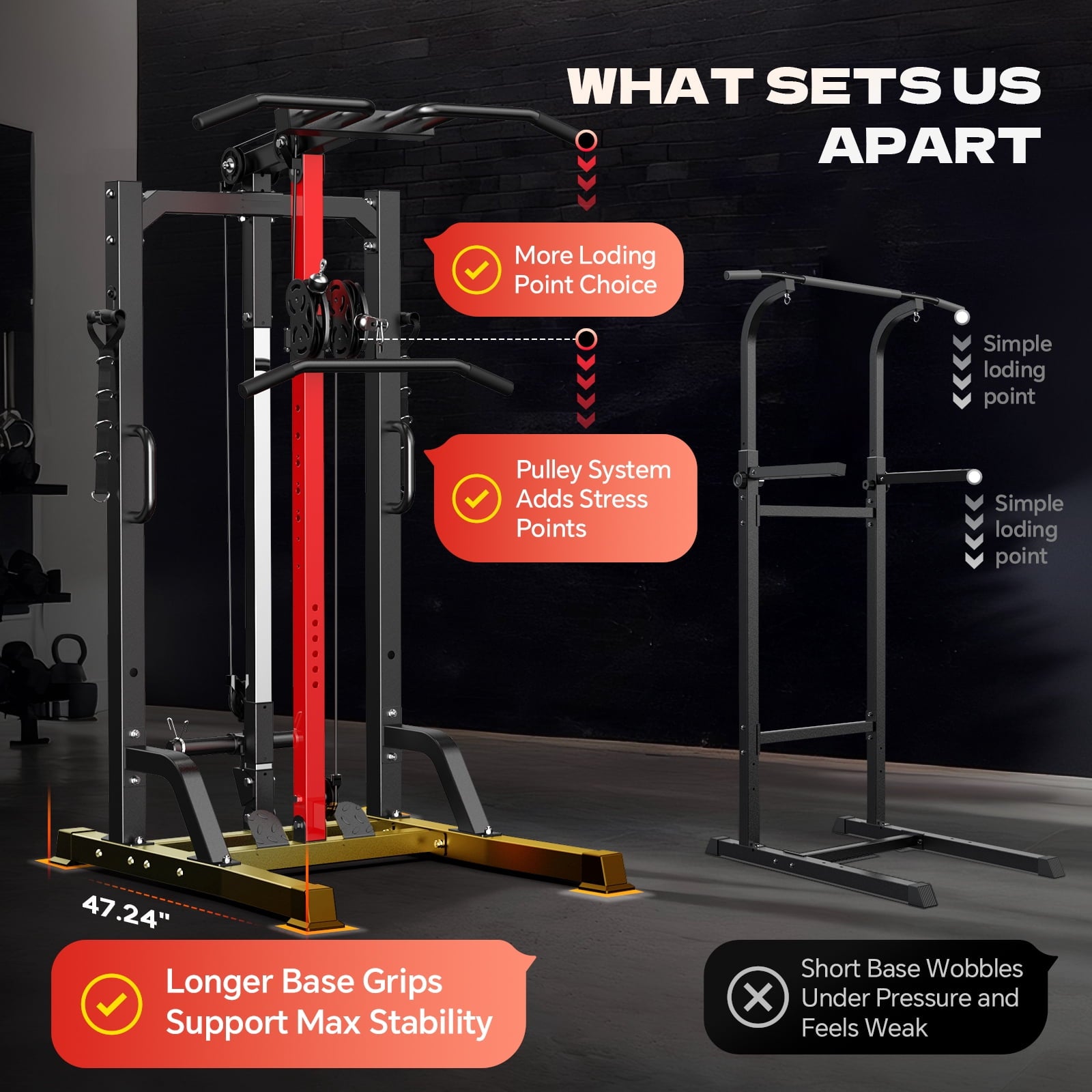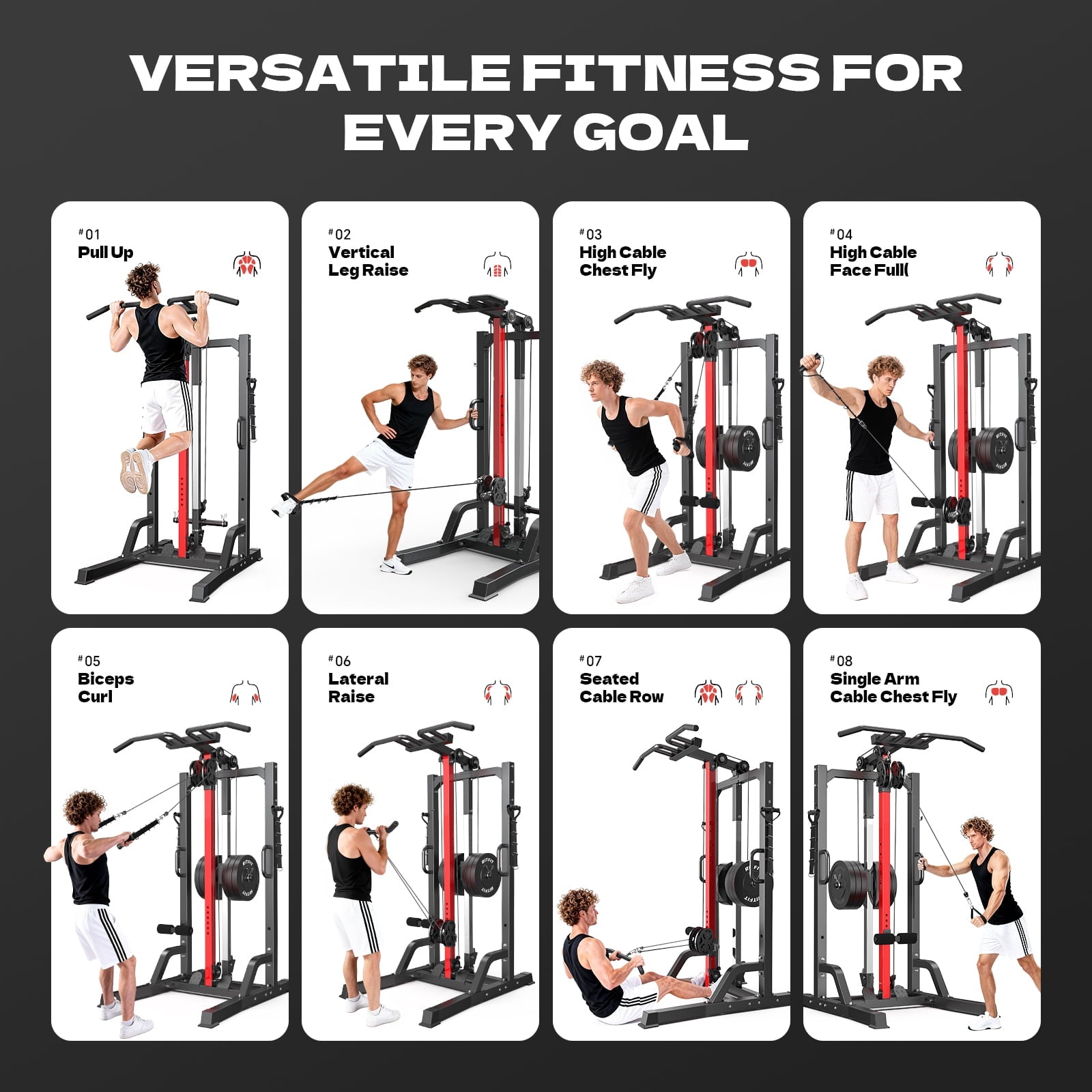 Bring a complete gym experience to your home with the TOSSFD Home Gym Station, designed for full-body strength training and muscle development. This versatile system combines LAT pull-downs, seated row exercises, and high & low pulley stations, allowing you to target your back, chest, arms, shoulders, and core with a single compact unit.