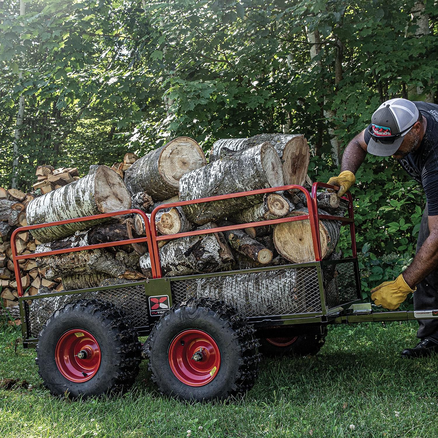 Yutrax X4 Trailer features four large off-road wheels fixed to a pivoting tracking beam. Full trailer loads ride smooth and walk over logs and large rocks for a smoother tow and less bouncing. You won’t have to mess around with backing up to get rid of your heavy loads – the dual-use pivot/tilt bead design allows you to simply drive alongside your location, release the bed latch and turn the trailer bed to dump the load. When it comes to hauling – whether its firewood, leaves hunting gear, rocks or tools – the Yutrax X4 ATV Trailer brings an amazing level of strength, stability and versatility.